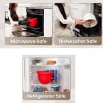 Elastīgais silikona ieliktnis cieši pieguļ bļodai, nodrošinot vienmērīgu un stabilu maisīšanu lietošanas laikā.