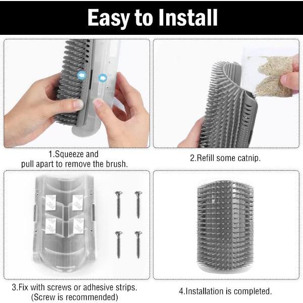 Kaķiem var paiet zināms laiks, kamēr viņi pielāgosies šīm stūra kaķu birstēm, un jūs varat palielināt viņu interesi, pievienojot šķipsniņu kaķumētras (nav iekļauta komplektā).