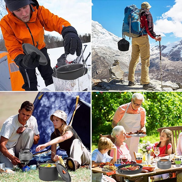 Gatavojiet jebkur ar šo daudzpusīgo, kompakto un vieglo virtuves piederumu komplektu, kas ir ideāli piemērots mājām, ceļojumiem un piedzīvojumiem dabā.