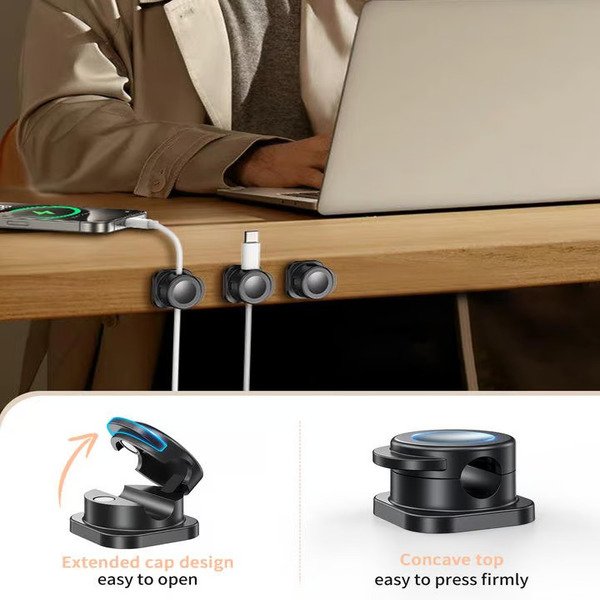 Uztur uzlādes vadus sakārtotus un novērš to nokrišanu no galda.