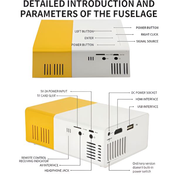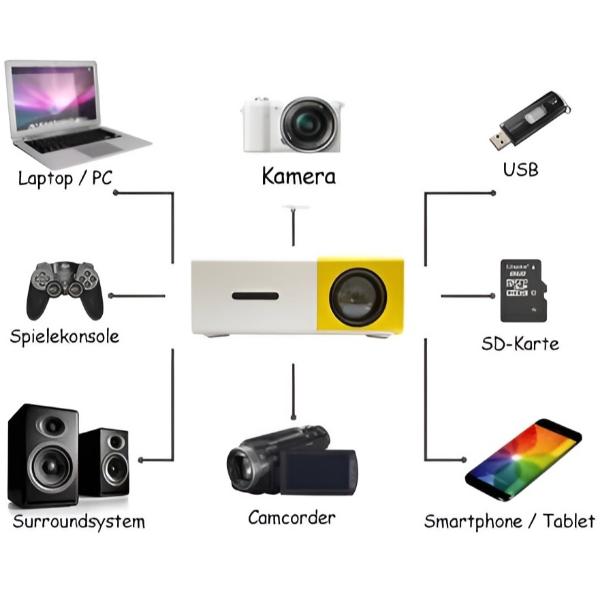 Ar vairākiem portiem, piemēram, USB, HDMI un AV, šis projektors nodrošina jautrību neatkarīgi no izmantotās ierīces.