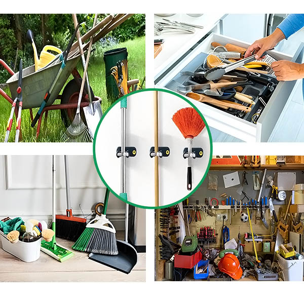 Šie turētāji ir lieliski piemēroti ne tikai slotu un mopu turēšanai, bet arī dārza instrumentiem, lietussargiem vai pat garāžā, lai uzturētu kārtībā savu aprīkojumu. Neatkarīgi no tā, vai tie atrodas pie ieejas durvīm, vannas istabā, virtuvē vai ārā dārzā, šie turētāji atradīs savu vietu jebkurā jūsu mājas daļā.