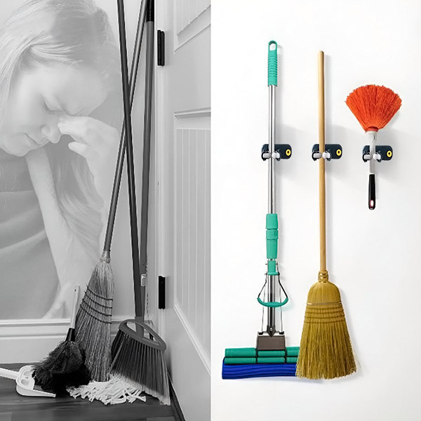 🧹 Uzturiet savu telpu sakoptu un tīru ar mūsu 3 universālo turētāju komplektu! Ideāli piemēroti mopu, slotu un citu priekšmetu sakārtošanai mājās, garāžā vai dārzā. 🚪🧺