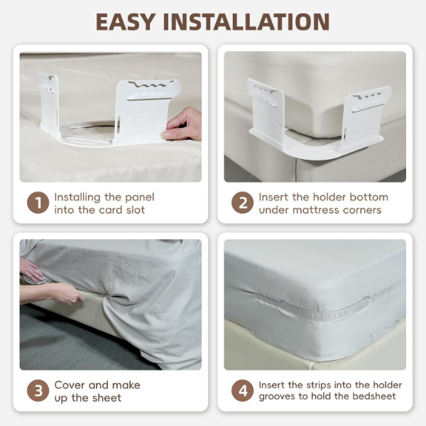 💪 Spēcīga turēšanas sistēma bez klipšiem vai āķiem 👻 Neredzams dizains, kas iekļaujas jebkurā gultas stilā