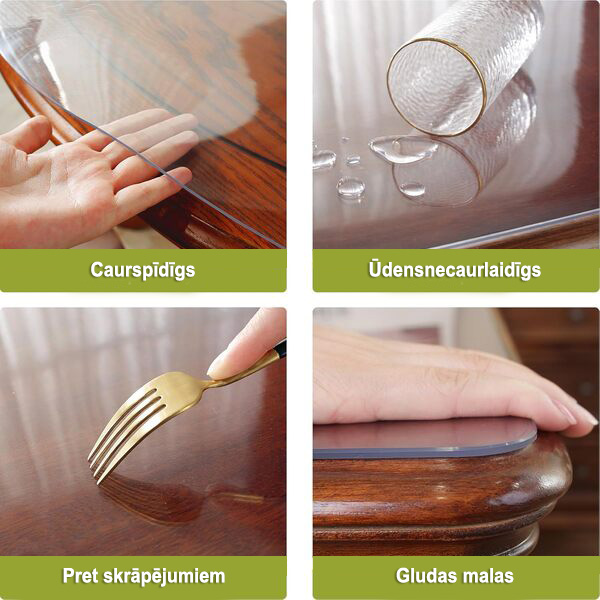 Atjauniniet savu ēdamistabas telpu ar mūsu augstākās kvalitātes PVC galda pārklāju. Tas ir izstrādāts, lai saglabātu jūsu galdu nevainojamā stāvoklī, piedāvājot izcilu aizsardzību pret skrāpējumiem, izšļakstījumiem un citiem bojājumiem.