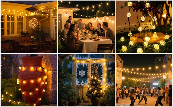 Atzīmējiet savus īpašos notikumus – kāzas, piknikus vai Ziemassvētku svinības ar ilgstošu eleganci. SOLSTICE virtenēm un saules paneļiem ir IP44 ūdensnecaurlaidība, un tos var izmantot gan iekštelpās, gan ārā, neuztraucoties par laikapstākļu radītiem bojājumiem.