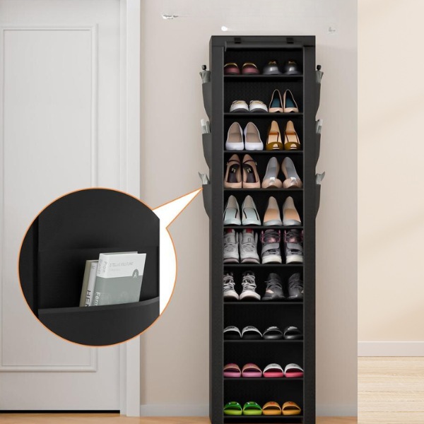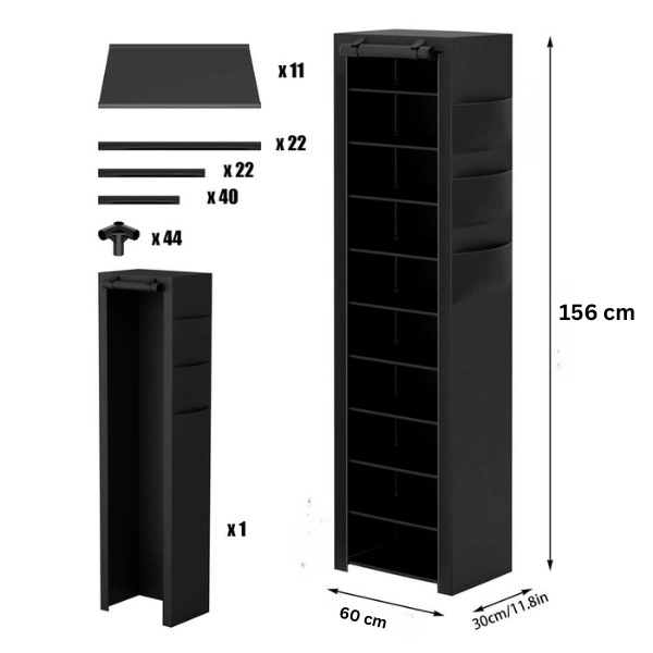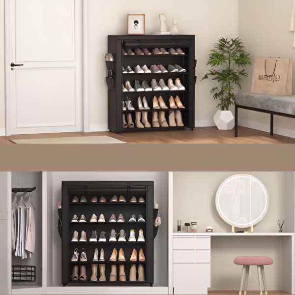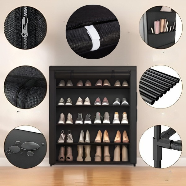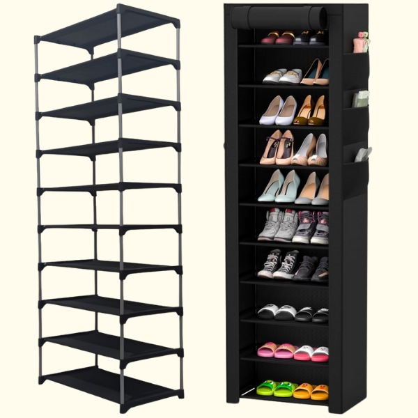 Aprīkots ar putekļu izturīgu auduma pārsegu un rāvējslēdzēja aizdari. Šis apavu plaukts nodrošina, ka jūsu apavi paliek tīri, aizsargājot tos no putekļiem un netīrumiem.