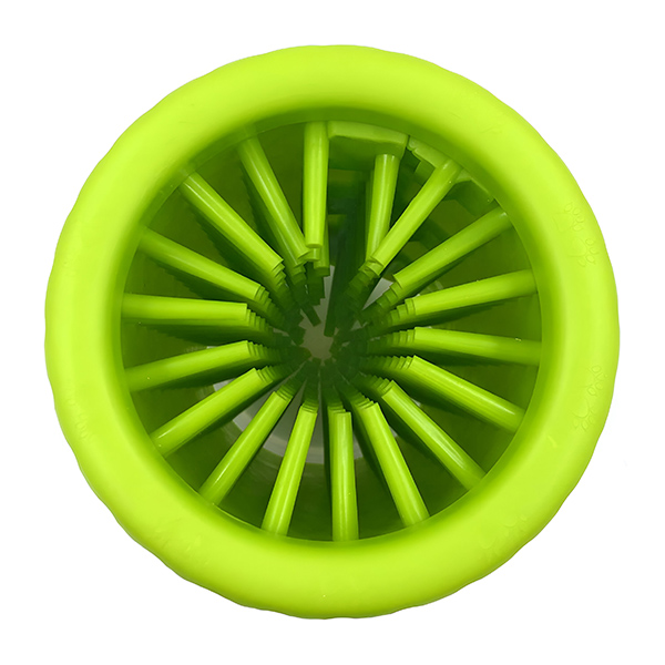 Cilindriskais dizains ļauj efektīvi mazgāt grūti aizsniedzamas vietas. Vienkārši ievietojiet suņa ķepu, pagrieziet to un ļaujiet silikona sariņiem noņemt netīrumus un gružus. Izbaudiet nevainojamu mājokli bez nepatikšanām.
